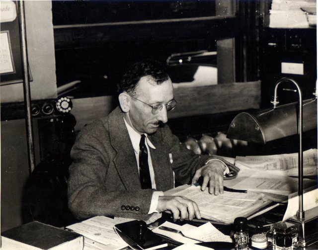 ![]() Azarie Choquet fils, chef du Secrétariat de la police municipale à sa table de travail. |