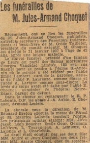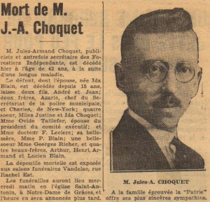 Jules Armand Choquet était journaliste and publiciste. (voir agrandissement de la photo)