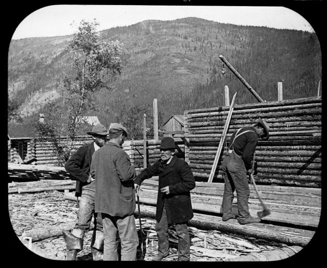 centre) prise à Dawson en 1897, un an avant sa mort.