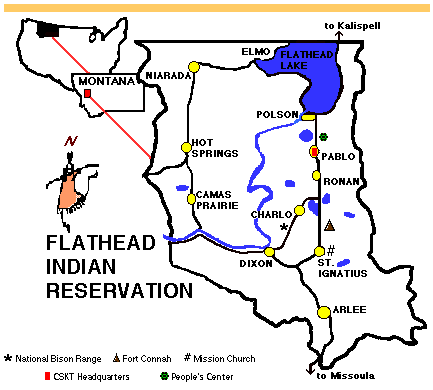 Les Flatheads, également connus sous le nom de la tribu Salish de l’Amérique du Nord, habitaient à l’origine la région qui bordait la rivière et le lac Flathead, où se trouve aujourd’hui le Nord-Ouest du Montana. Le nom de Flatheads leur a été attribué par d’autres tribus nord-américaines qui vivaient le long du fleuve Columbia. Ces derniers formaient un cône à la tête de leurs bébés en la comprimant d’un genre de chapeau artisanal en forme de cône. La tête des Salish, en revanche, était de forme normale et plate, selon eux. Bien qu’ils n’étaient pas belliqueux, les Salish se défendaient avec courage. (Source : Microsoft® Encarta® Online Encyclopedia 2000)