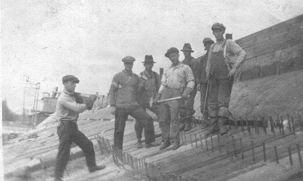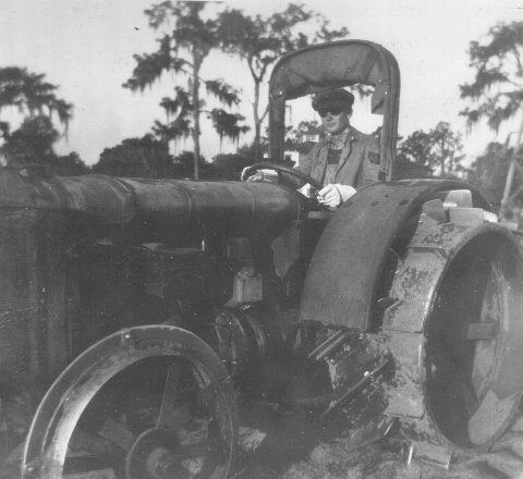 ![]() Théophile Choquette (père de Yolaine) sur le tracteur de la ferme familiale vers 1920. (voir agrandissement) |