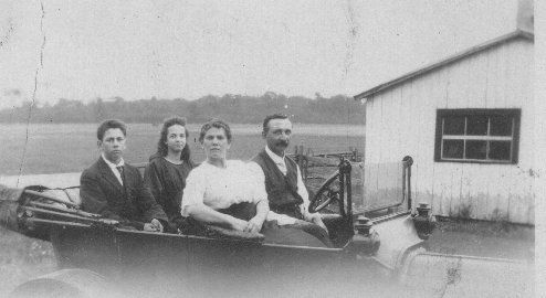 ![]() Photo datée du 17 août 1917 Avant : Théophile Choquette (père) et Marie-Rose Ménard Arrière : Théophile Choquette (fils) et sa fille Thérèse (voir agrandissement) |