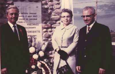Jeanne Choquette in front of Nicolas Choquet's monument during the 300th Anniversary Celebrations (1965)