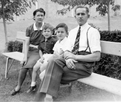 De gauche à droite : Eugénie Labelle, la grand-mère paternelle d'Andrée, son père Jacques Choquette, son oncle Robert Choquette, et Bernard Choquette, son grand-père paternel |